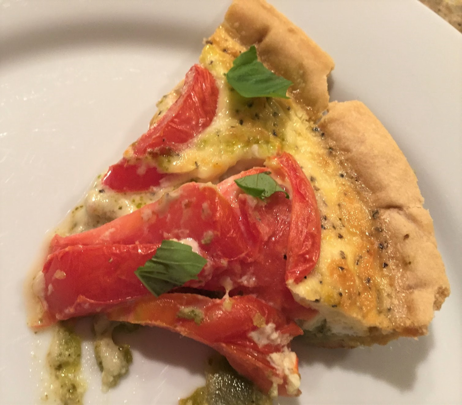 The NYT says this about heirloom tomatoes: Heirloom tomatoes may seem flawed, but it’s actually their uniformly red counterparts who are the genetic deviants of the tomato family. Decades ago, many businesses decided to prioritize cookie-cutter-like hybrid tomatoes, which grow year-round and can survive a long, bumpy journey. It left heirloom tomatoes on the wrong side of the deal. The varieties that remain have a shorter shelf life and are relegated to just a few months of summer, but they’re sweeter with a more robust flavor. This tart celebrates juicy, vibrant tomatoes in a cheesy, herby, custard-filled, flaky crust, with each bite punctuated with pesto.