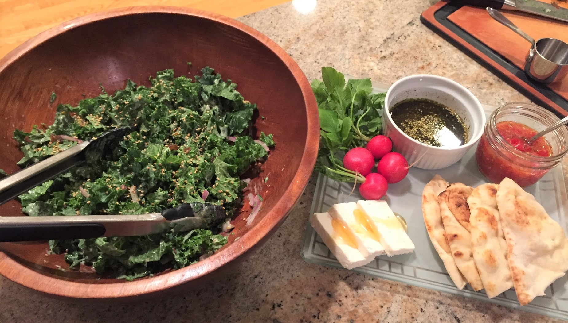 Tuesday: Middle Eastern Bread Spread with Kale Salad