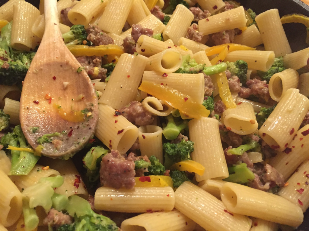 Tuesday:                   Sausage and Peppers Pasta with Broccoli