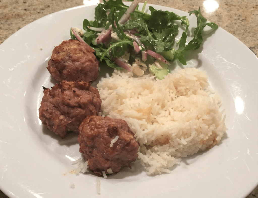 Wednesday:            Chicken Miso Meatballs with Rice and Greens