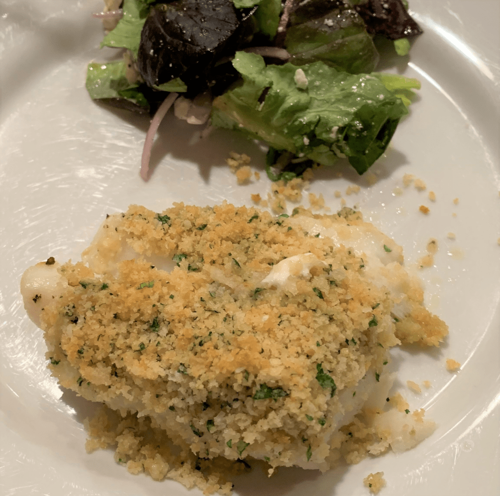 Friday:                       Baked Cod with Bread Crumbs, Salad