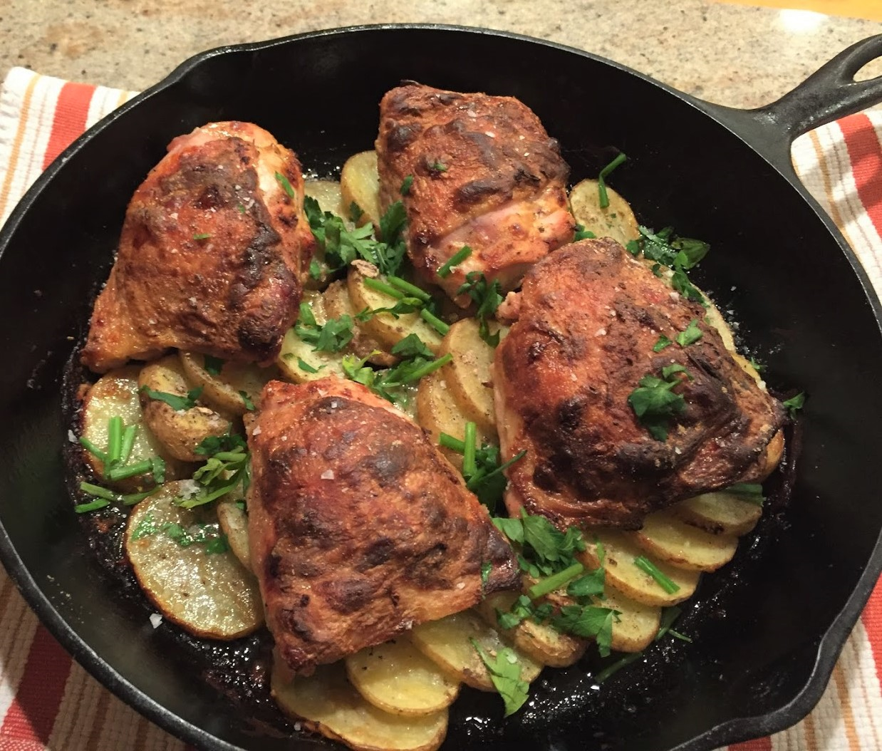 Sunday:                     Skillet Roasted Chicken and Potatoes, Salad