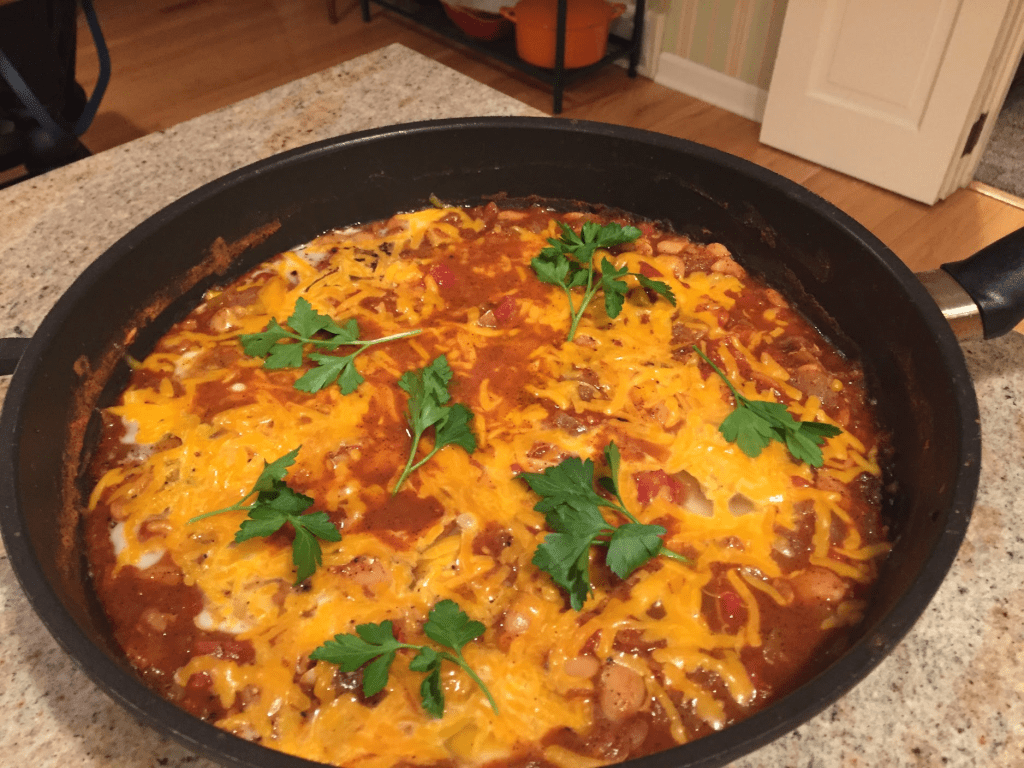 Monday:                   Skillet Vegetarian Chili with Eggs and Cheddar