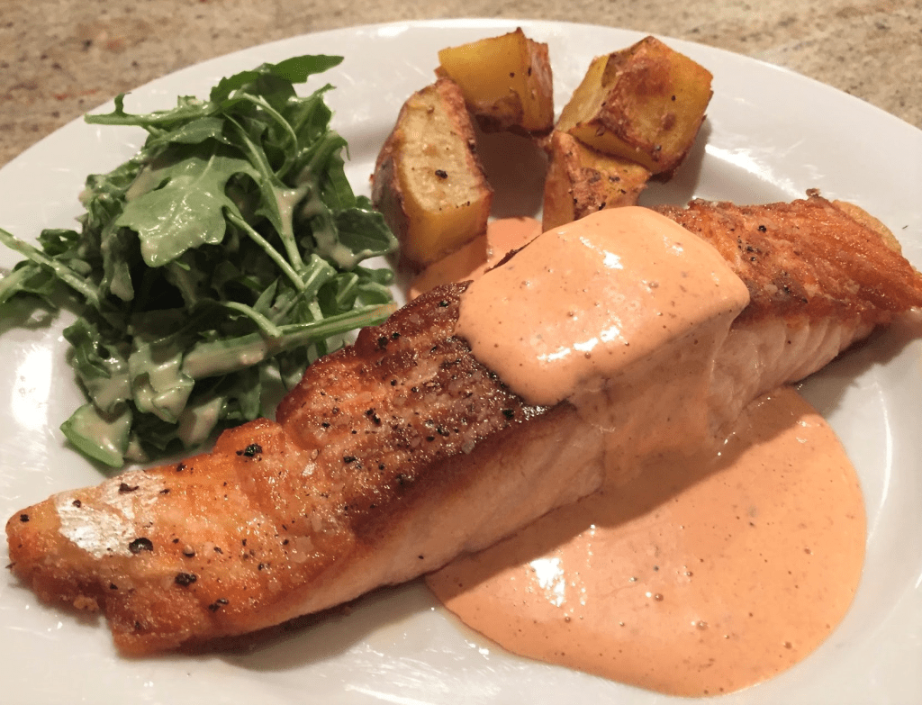 Friday: Seared Salmon with Red Pepper Aioli / Salad