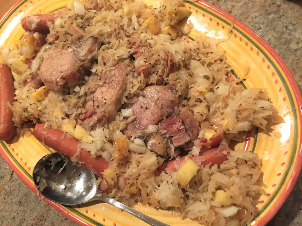 Friday: New Year’s Day Dinner – Kraut, Pork Chops, Brats, Mashed Potatoes