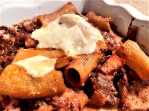 Saturday:                  Dinner with the Harts:  Rigatoni with Pork Ragû, Salad,                                     App of Fig and Brie on Crusty Bread, Dessert of Chocolate                                               Rosemary Syrup Cake