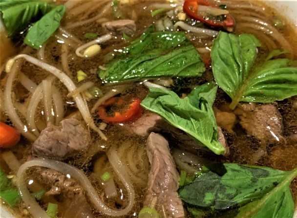 Perhaps a bit of context is in order: SWMBO and I do not have a favorite Vietnamese or Thai restaurant. We don’t have a favorite tortilla vendor, or Bulgoki restaurant, nor do we have a special tea or coffee vendor. In other words, though we really like to eat and to cook well, we are not, in the metropolitan New York, DC or LA sense, true ‘foodies.’ So what’s with the Pho?