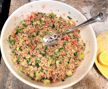 Friday: Grilled Salmon with Parsley Sauce and Leftover Tabbouleh