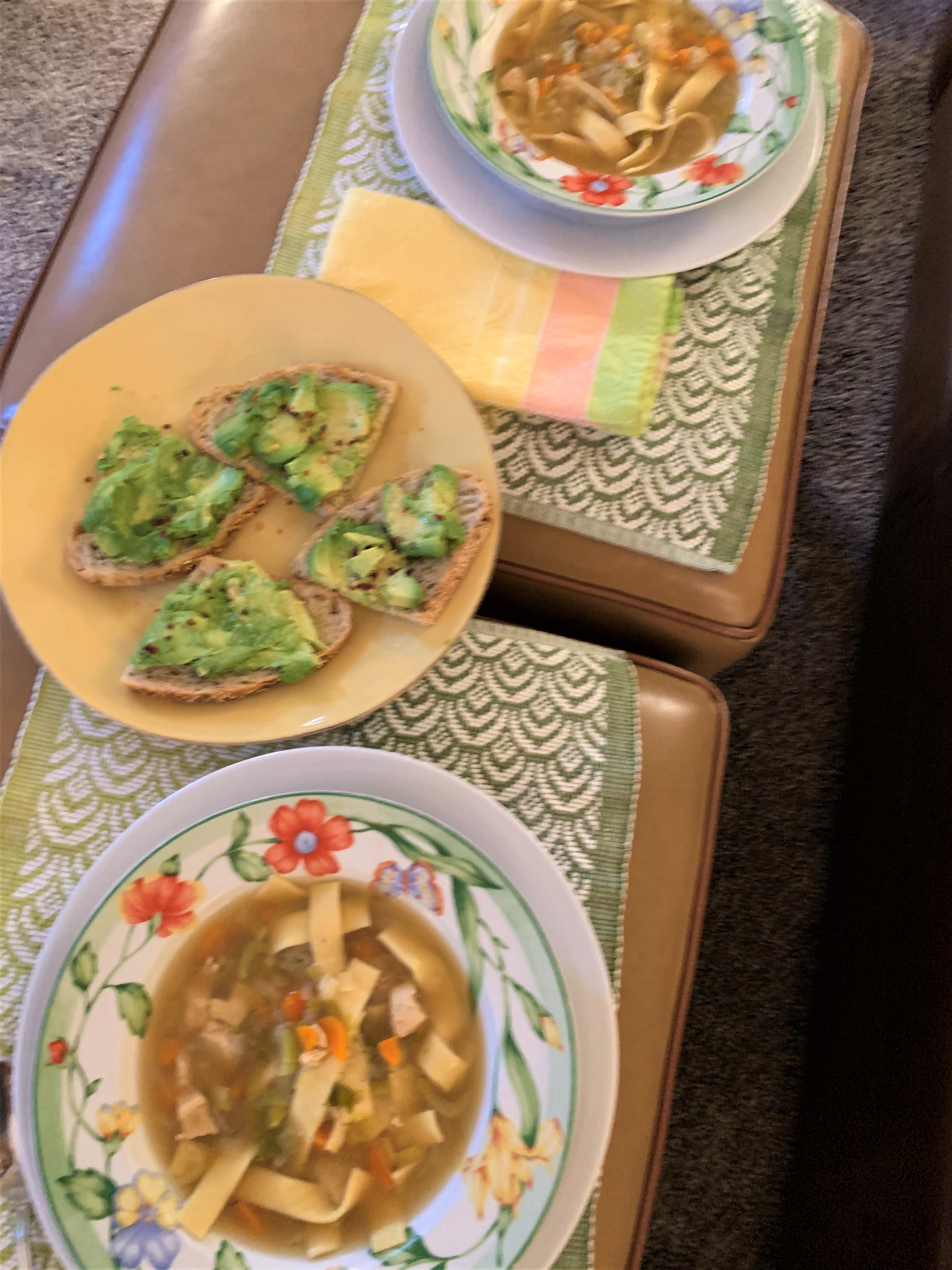 Monday: Chicken Soup from Scraps with Avocado Toast