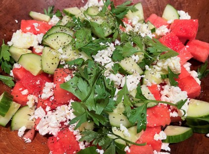 And finally, Michael Symon’s chicken thighs with blackberry barbecue sauce is a unique, craveable and shirt-staining meal that everyone should have. The Mediterranean watermelon salad that went with it helps to deal with the richness of the chicken and brings an extra citrus tang to the whole affair.