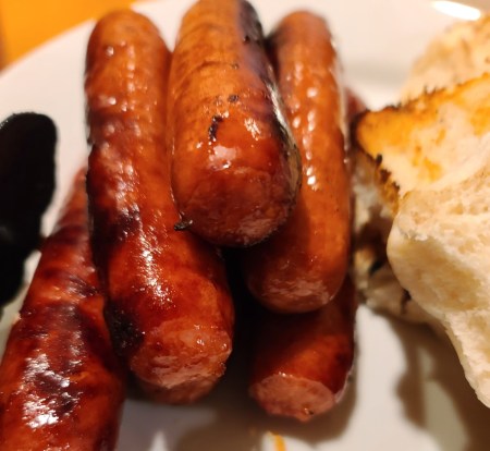 Sunday: Brats, Tomato Salad with Blue Cheese and Crispy Shallots, Boiled Corn