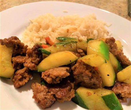 Wednesday: Caramelized Pork and Cucumber Stir Fry (ba, Sept, 71)