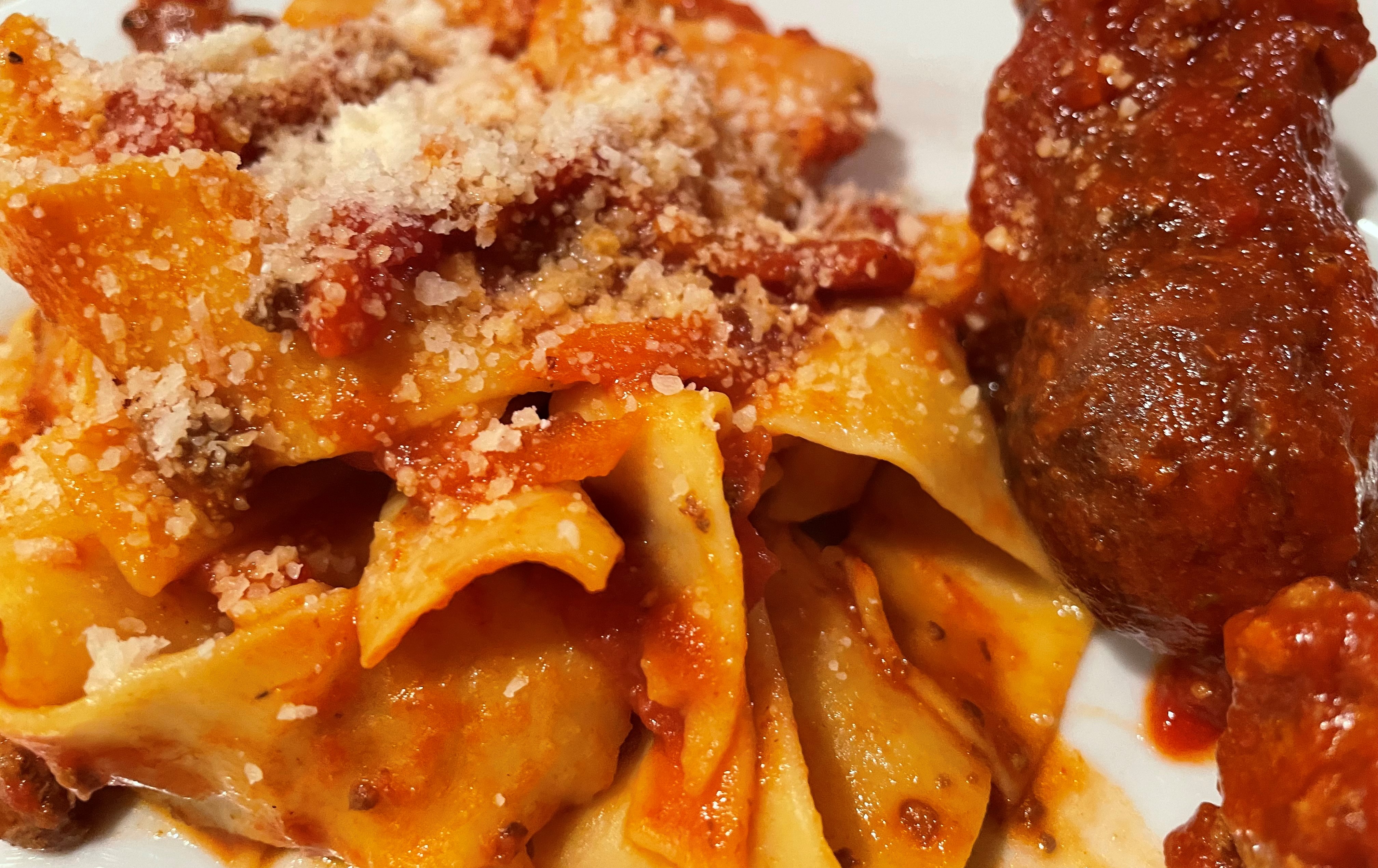 Sunday: Sunday Gravy with meatballs, county ribs, sausage and pappardelle