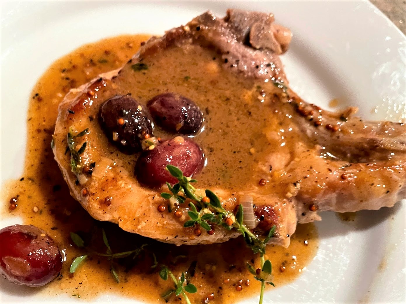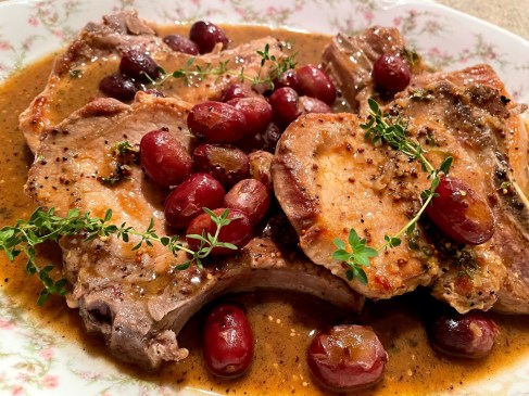 Now add the chops, grapes and any juices back into the skillet and cook about 3 minutes until warmed through.