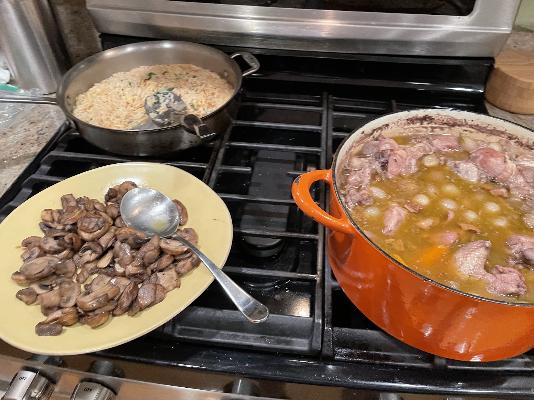 Monday: Coq au Vin with Rice / Roasted Shrimp with Cocktail Sauce