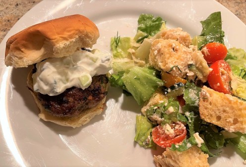 Wednesday:                 Feta Panzanella with Oregano Dressing / Merguez Sliders