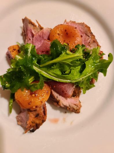 Sunday: Grilled Pork with Mustard Fruit and Arugula