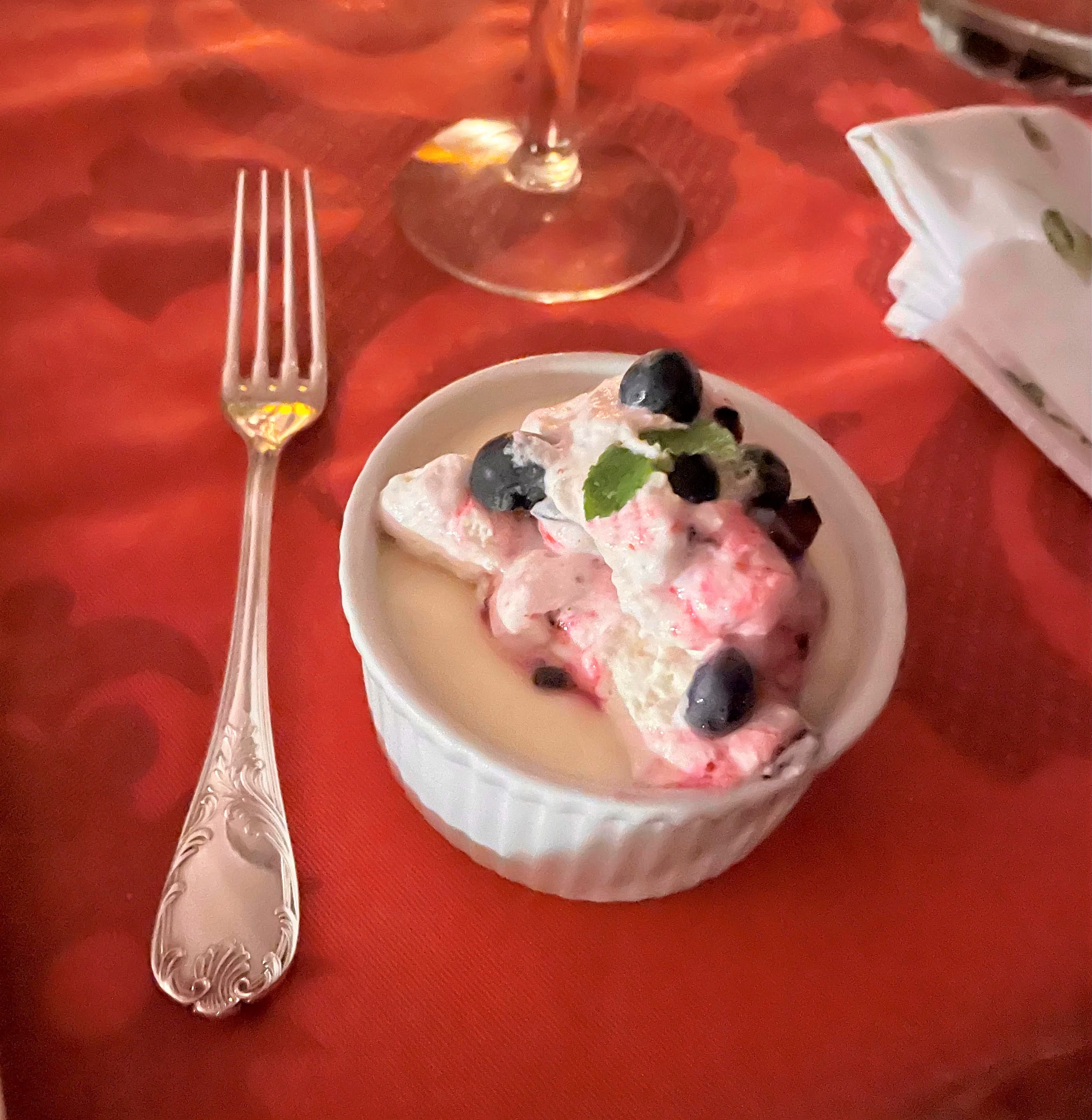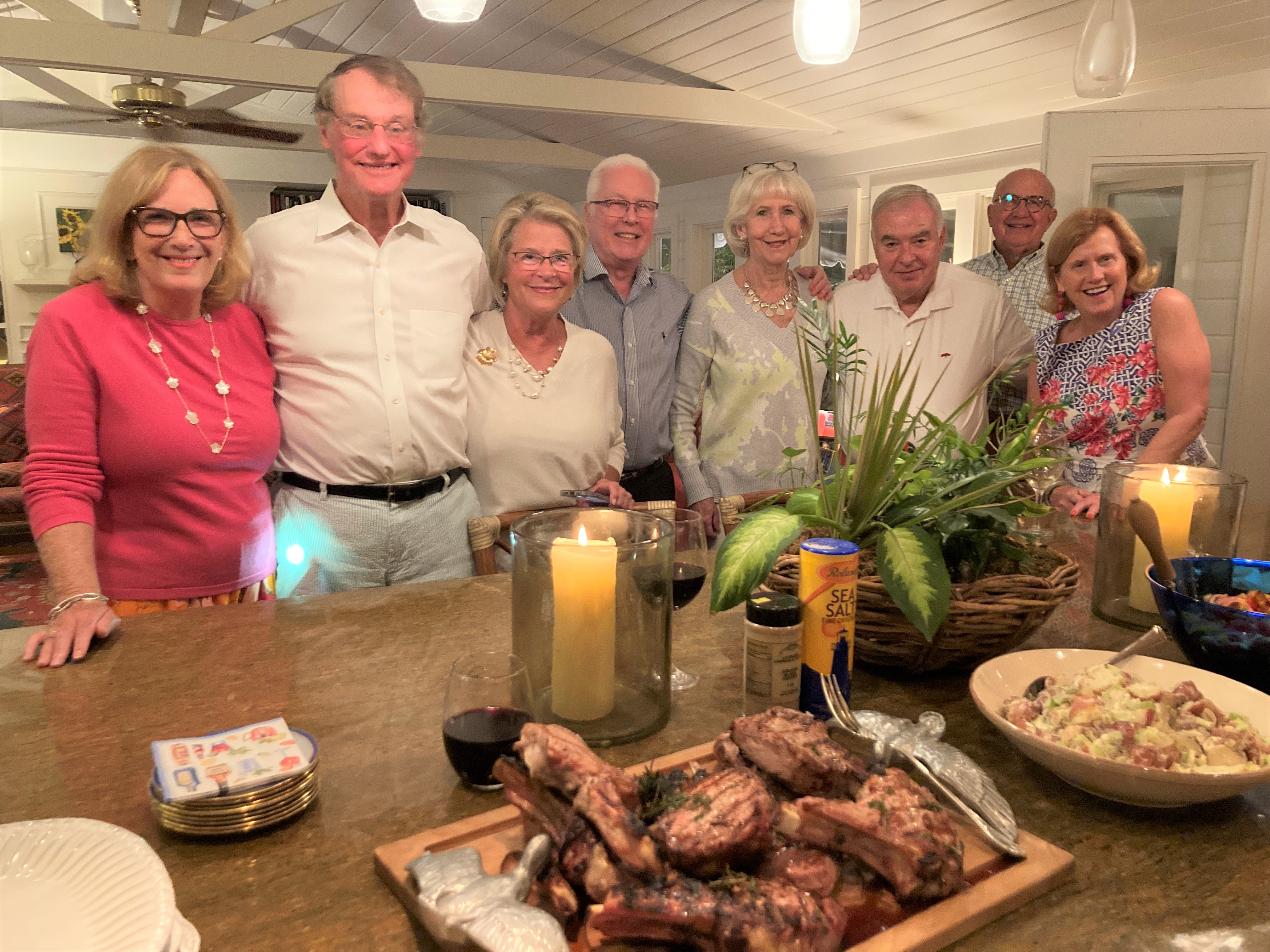 On Saturday night we had the great meal of the summer at Katie and Dave’s.* Dave grilled veal chops which were better than the $75.00 ones you’ve had at your local fancy restaurant, and he did this while sipping Moscow Mules and talking non-stop to Tim with whom he had entered what I have taken to calling the golfosphere. Dennis and I cannot follow them there, having neither the knowledge nor, truth be told, the interest, but that left us with the ladies which was a fine place to be. And Hilda and Katie provided great hors d’oeuvres. There was a fine potato salad (Katie?) and nifty panzanella (Annie?) and Julie made a dessert that even those of us who don’t eat dessert could not resist. The Steelers won a pre-season game, Tim brought a fine wine, and we drank a lot of Katie and Dave’s stock. Altogether, a memorable evening.