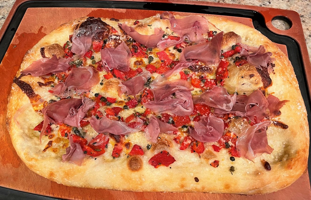 Tuesday: Spanish Style Flat Bread with Prosciutto with Tomato and Black Bean Stew