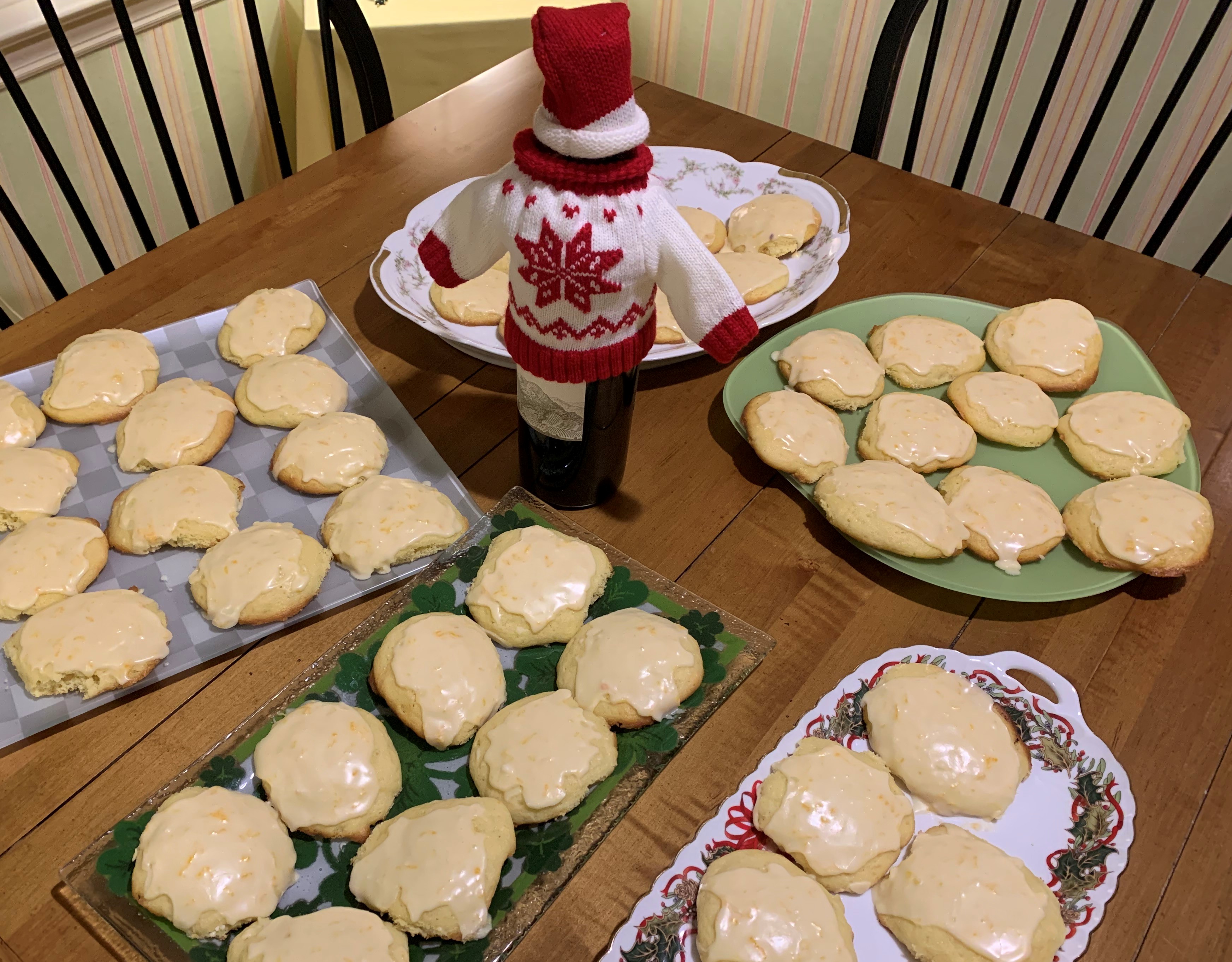 I’ll begin with something we rarely eat and have never written about in this blog – cookies. For years, Barbara has been dreaming about her Grandma Kelly’s orange cookies and asking around among family members if anybody had the recipe or might be able to find it in the boxes of photos and memorabilia that families accumulate, like ships accrete barnacles, over time. Frankly, I never knew whether the orange cookies were really a great thing or something that had achieved that status by just being part of a happy childhood. But this year, Barbara decided that she would try to recreate that cookie of family legend for Christmas and we found a recipe that looked promising and, with my help (I lugged the 25 lb. stand mixer out to the kitchen counter) she made those cookies and they were absolutely take-them-away-from-me-or-I-will-eat-all-four-dozen great. They were a hit on Christmas Eve, Christmas Day, New Year’s Eve and Day and last Tuesday – 11 days after they were baked! So, we are going to share, if not Grandma Kelly’s, at least granddaughter Barbara’s recipe for orange cookies.