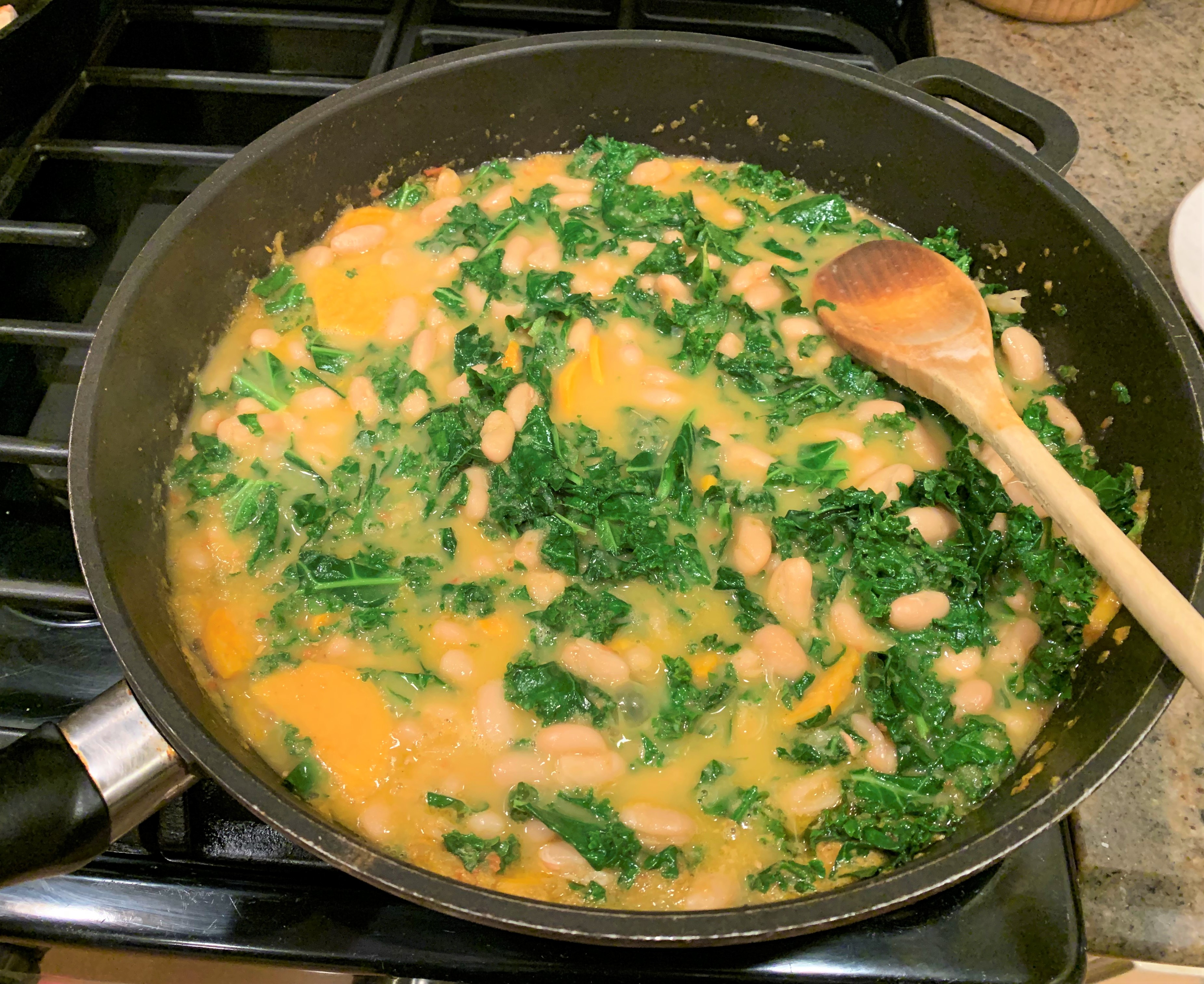 In a large bowl, whisk the flour, nutmeg, 1 teaspoon salt and ½ teaspoon pepper together. In a small bowl or measuring cup, whisk the eggs and 1 cup of water. Add the egg mixture to the flour and whisk until you have a smooth batter. Cover and let stand at room temp for 30 minutes. Line a rimmed baking sheet with parchment paper and mist it with cooking spray. (You’ll use this to hold the dumplings as they come out of the boiling water.)