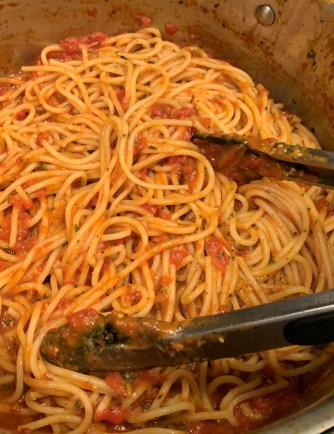 Friday: Pasta with Tomato-Pesto (Beez’s Pesto)Sauce