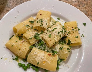 Saturday: Paccheri with Peas and Peccorino
