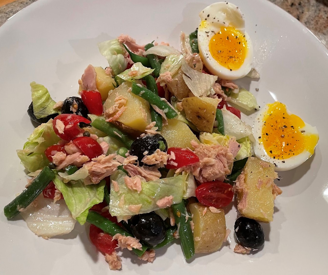 I seem to have been losing my carnivorous edge over the last few posts. Beez has even observed a pronounced reduction in the Neanderthal-like ridge above my eyes. Now, strictly speaking, these are not my ‘salad days’, according to Shakespeare, who wrote of “my salad days when I was green in judgment.” On the other hand, alternative meanings are early period of ‘flourishing’ and ‘heydey’. I am certainly not in my early flourishing so much as in my late withering. But certain things in my life wax and wane on their own, independent of my increasing years and growing feebleness. And a lot of them have to do with food. And – God how I hate to break this to young people – one does find that as one enters the ‘golden years’* that salads and other lighter foods gain a bit on the heavier stuff. So, hey, maybe these are my salad days after all.