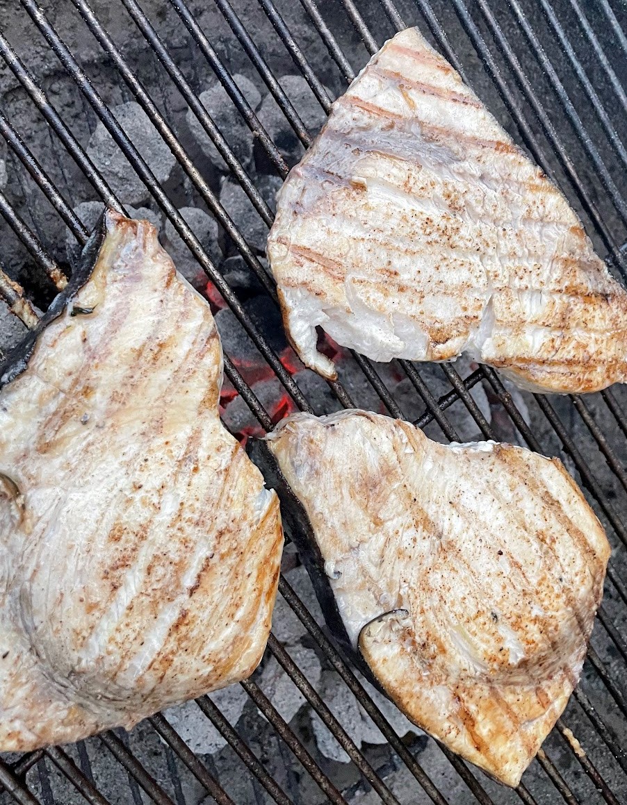 Sunday: Grilled Swordfish with Wine-bottle sauce, Corn and Zucchini Salad