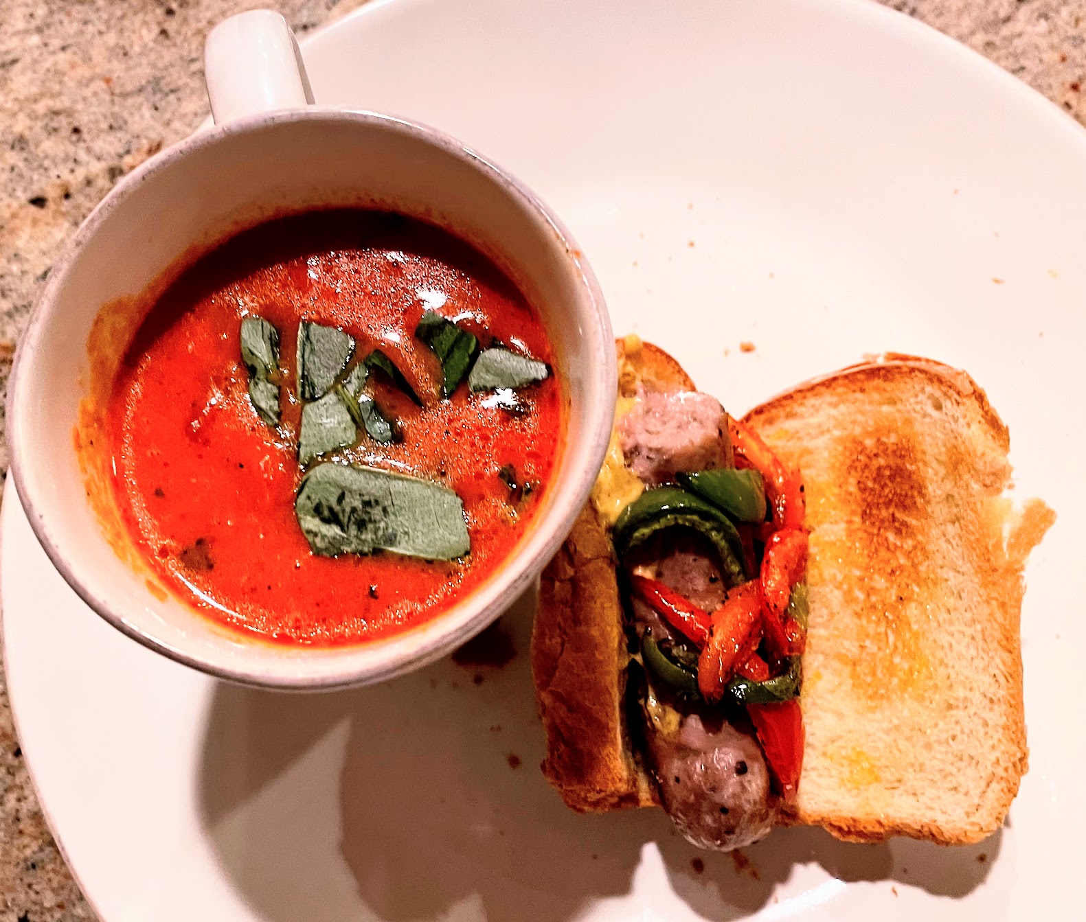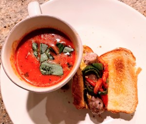 Friday: Sausage on toast with peppers and tomato soup