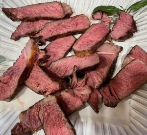 Well, fear no more – this week we’ll give you Stewart’s guide to flawless dinner party steak.  Next week, we’ll share two wonderful sides (corn and watermelon/cucumber salad) that fit the equatorial heat wave sweeping over what used to be known as the ‘temperate’ zone.  I am tempted, at this point, to insert my standard explainer on the difference between climate and weather, but I’ve discovered over the years that no one listens to me except Greta Thunberg and then she camps out in our front yard to protest, throws paint on the azaleas and destroys local property values.  And I might be okay with that, if she were one of those beautiful, blond Swedish women.  Alas, she is not and she is disturbingly short (4’11”) for a Scandinavian.  If he weren’t already married, I’d introduce her to Robert Reich – but, wait, we were talking about steak.