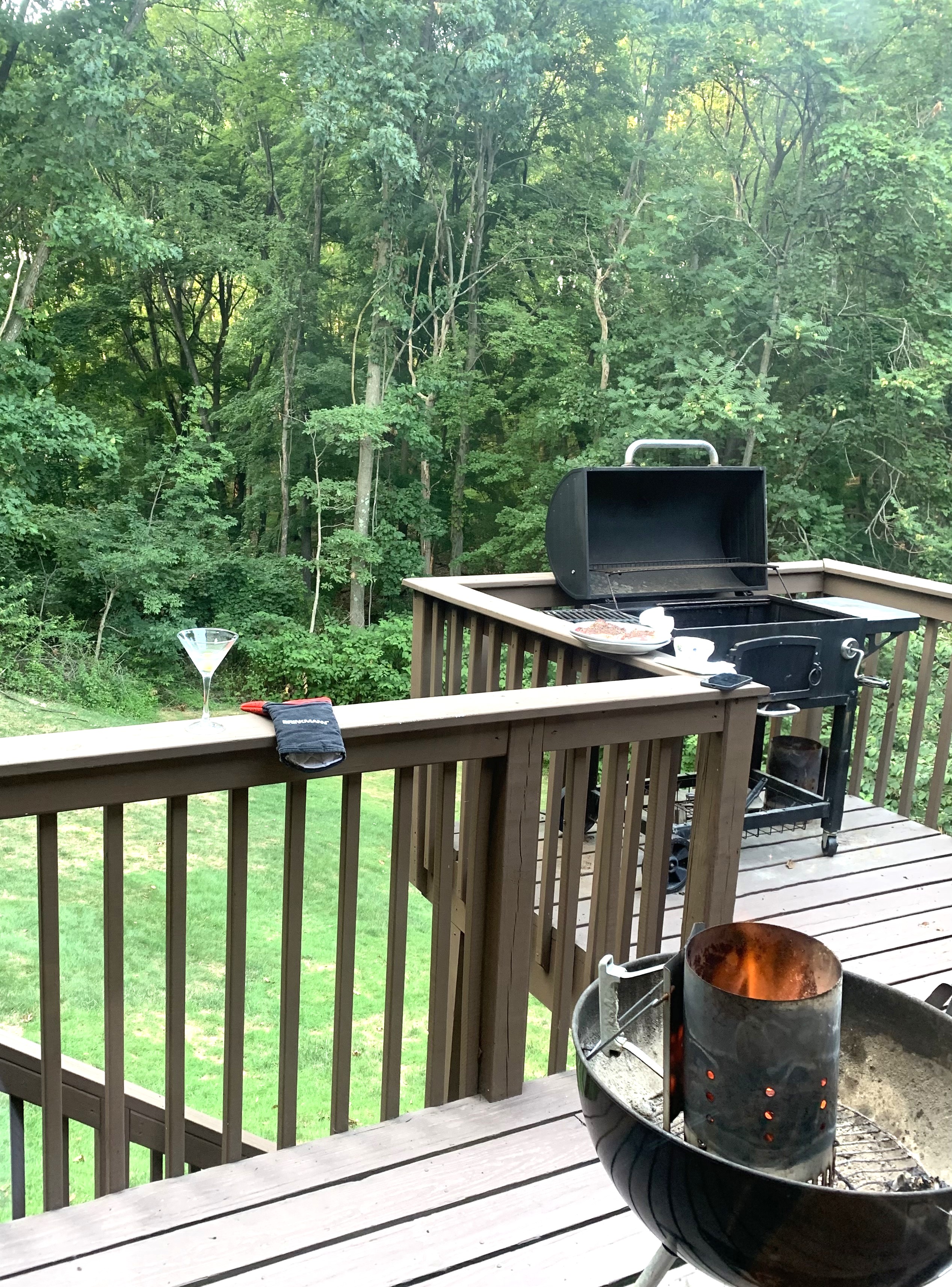 Cook the steaks on the hot side of the grill for ‘exactly’ 2 minutes on one side, then ‘exactly’ 2 more minutes on the other side.  [The ‘exactly’ comes from Ina – my own cooking tends to get a little inexact and fuzzy at the edges.]