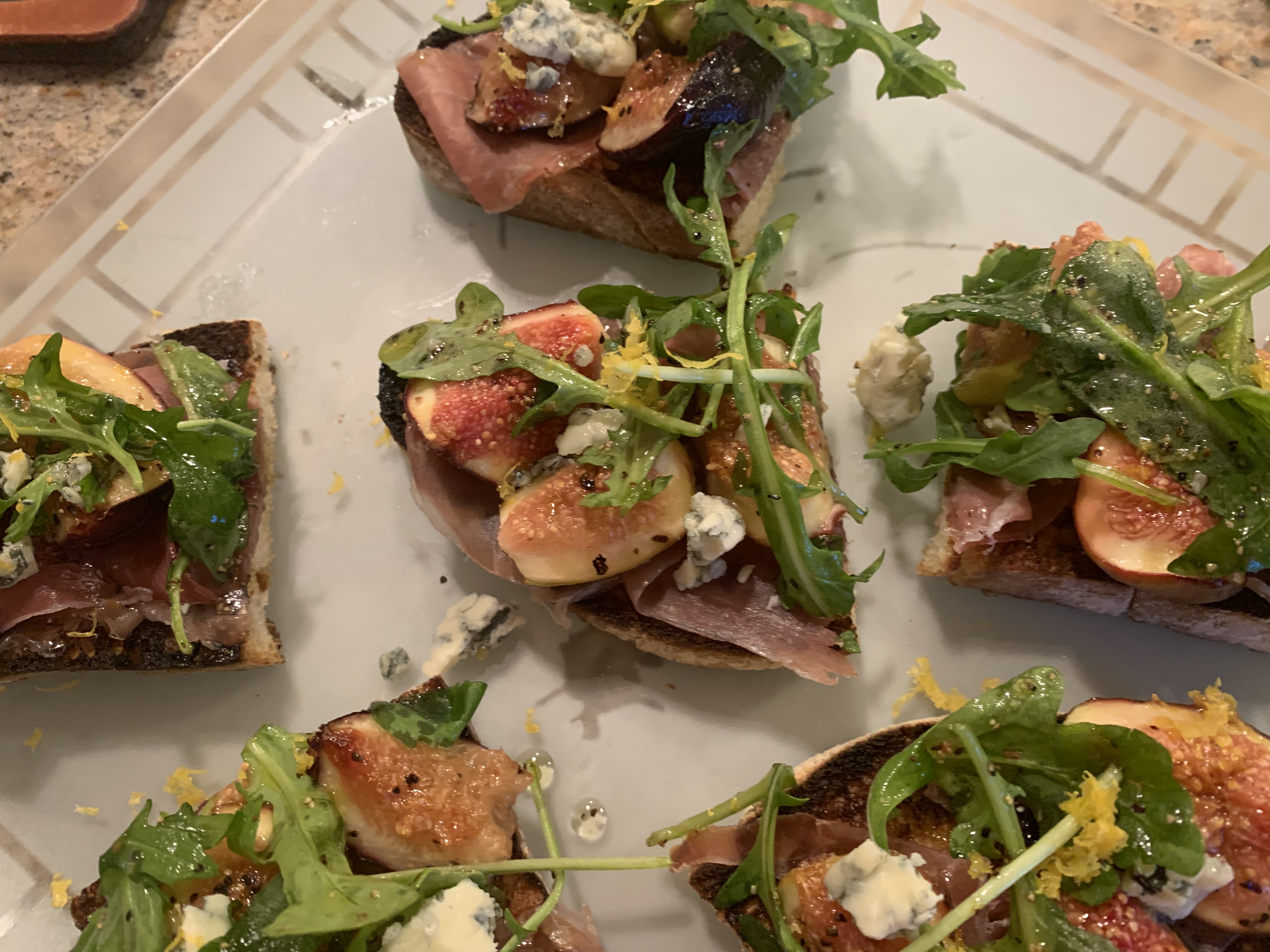 Sunday:                   Grilled Coffee-Rubbed Steaks, Caprese Salad, Fig and Prosciutto Bruschetta