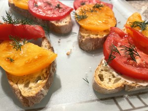 Monday: Leftover Chemuin Chicken with Tomato/Peach Caprese