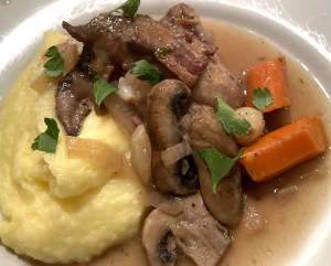 Monday: Leftover Coq au Vin with Mashed Potatoes