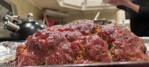 This recipe should feed six and if you are fewer than six you will have the great pleasure of meatloaf sandwiches on the following day.  This should make any red-blooded American who grew up in the fifties and sixties root for more snow and cold – and for his children to shovel the walk.
