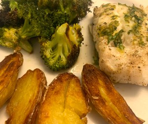Friday: Baked Cod with Potatoes and Broccoli