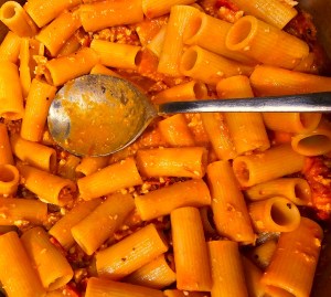 1 pound extra-long mafaldine noodles (note – we used rigatoni, I would have preferred tagliatelle or any wide noodle)