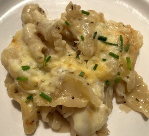 Scatter chives or parsley over pasta before serving. This will taste so much like French onion soup that you will be confused at first.