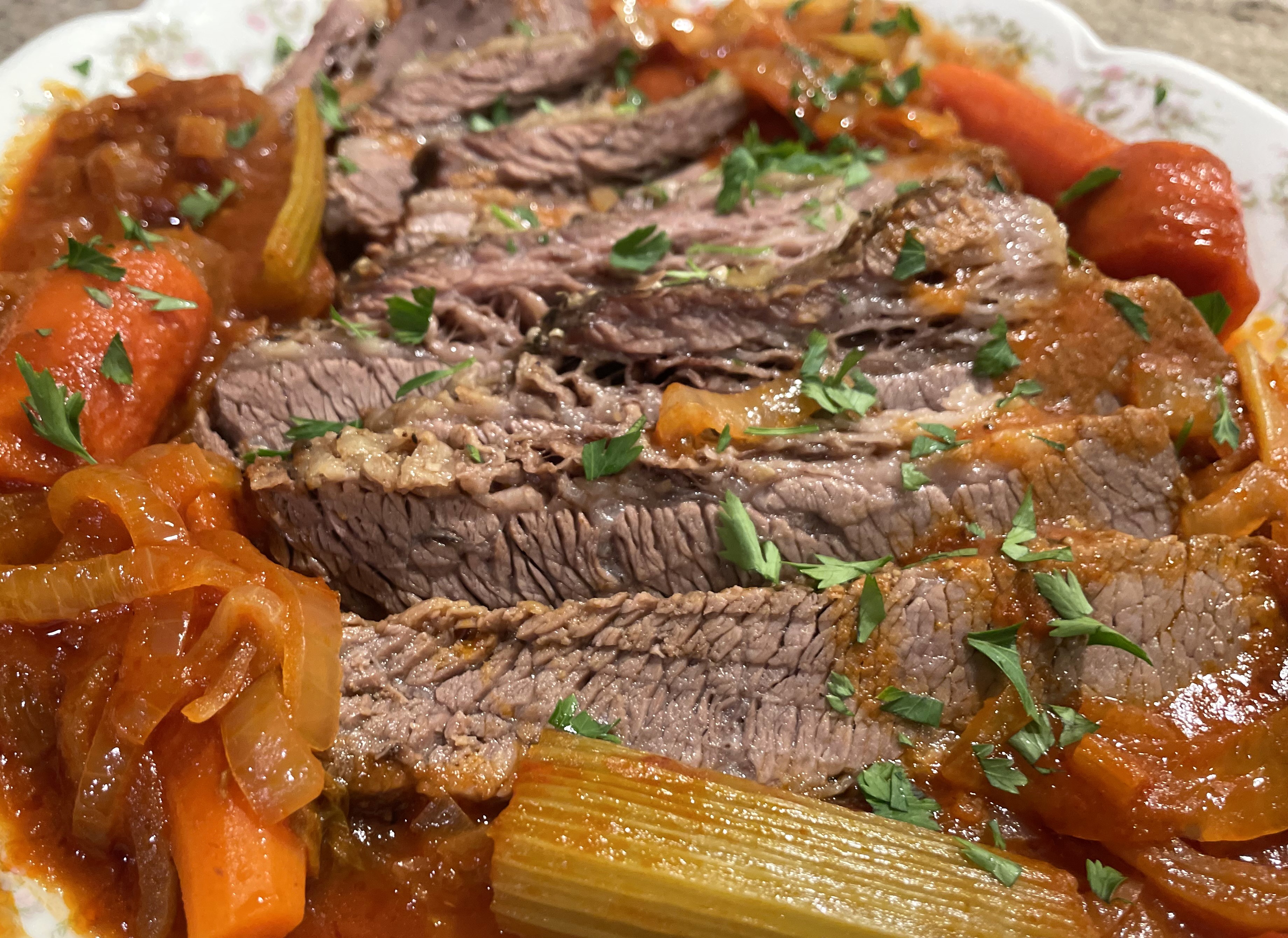 Sunday:                                 Brisket with Roast Vegetables and Tomato Sauce