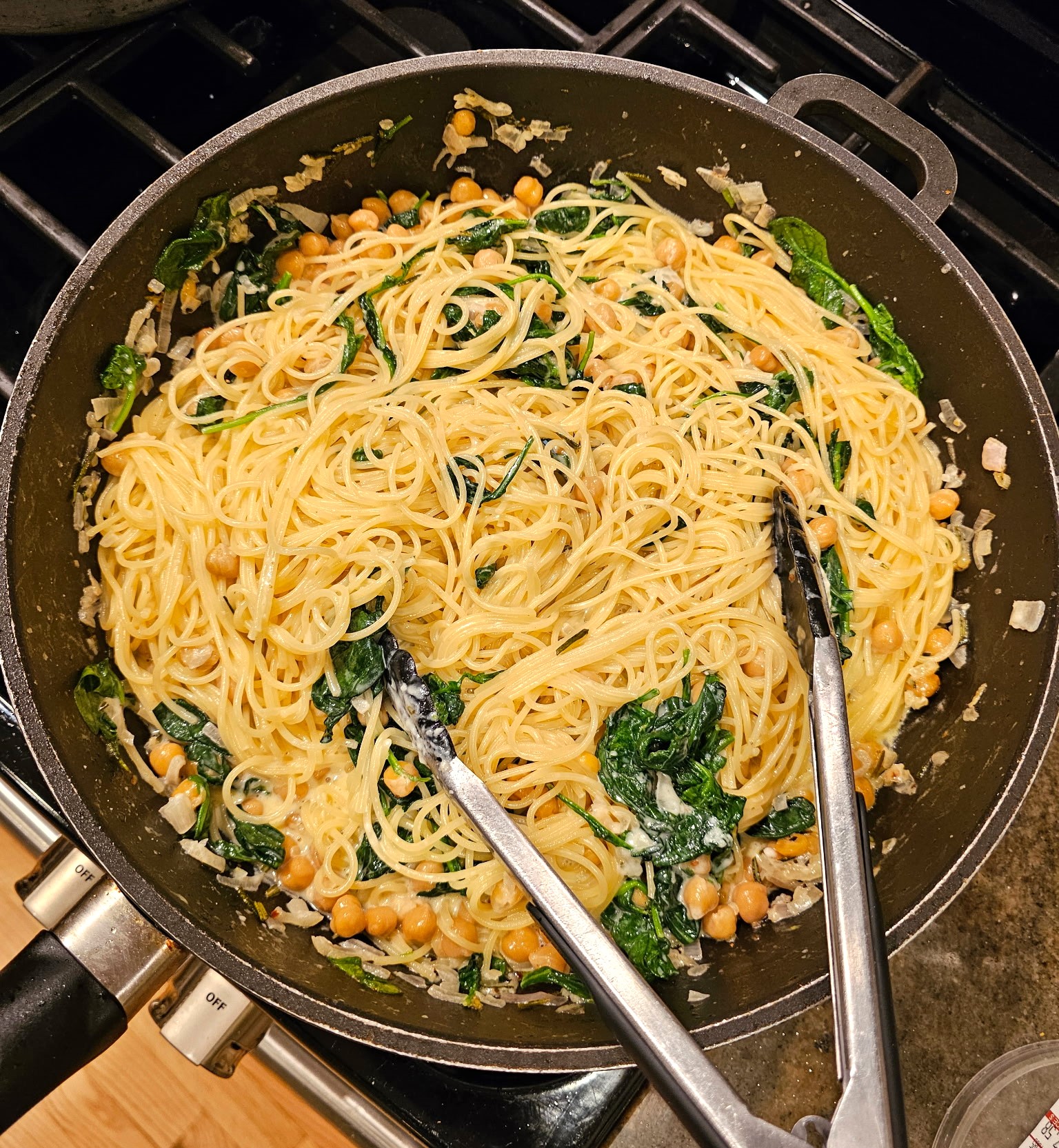 Tuesday: Creamy Chickpea Pasta with Spinach and Rosemary