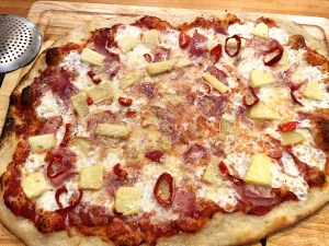 Saturday: Green Pepper, Ham, Pineapple and Tomato Pizza