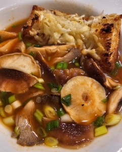 Tuesday: Light Soup with Mushrooms and Shaved Beef / Parmesan Crostini
