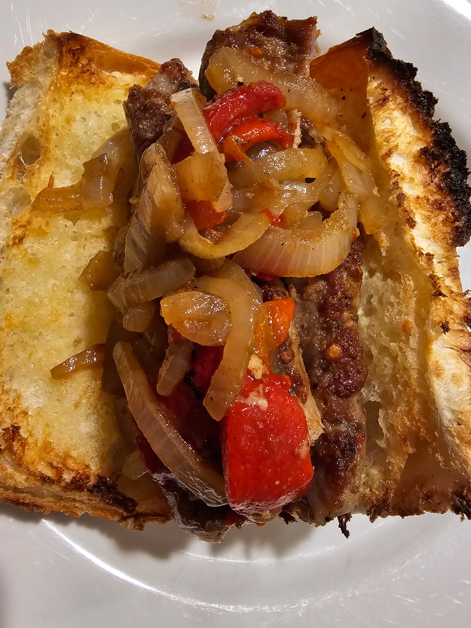 Wednesday: Charred Pepper and Onion and Sausage Sandwiches