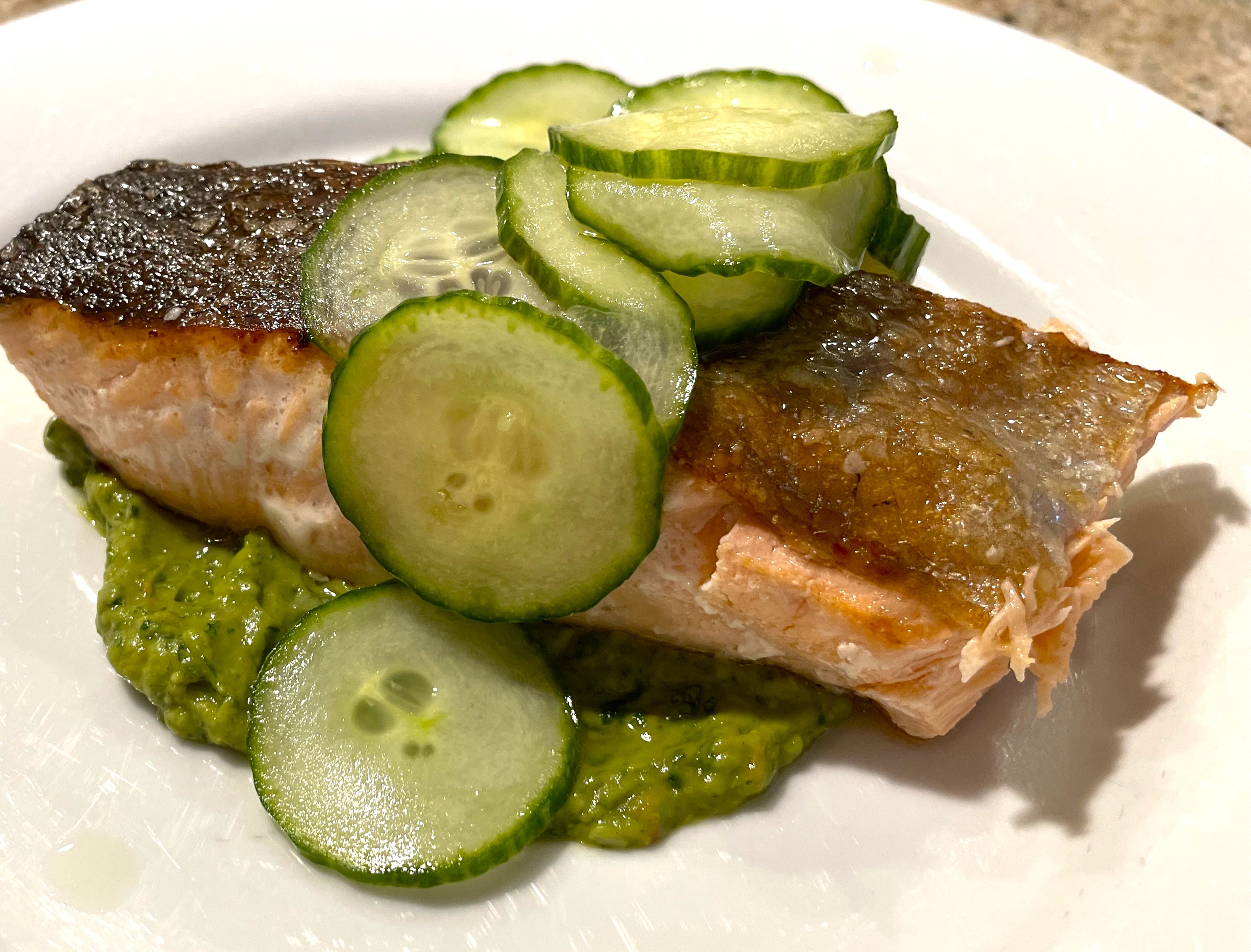 Friday: Crispy Salmon with Avocado Sauce with Sweet and Spicy Zucchini